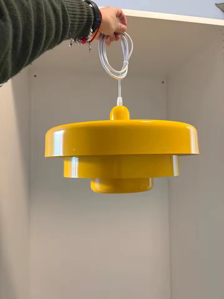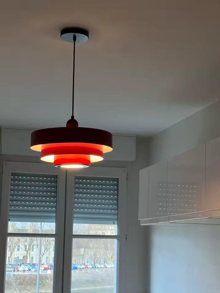 De Levela hanglamp combineert retro Bauhaus-vormen met modern LED-licht. De gelaagde metalen schijven zorgen voor een unieke, zachte lichtverspreiding en geven de lamp een iconische uitstraling. Perfect boven de eettafel, in de keuken of woonkamer — een echte designklassieker voor wie houdt van kleur, vorm en karakter.